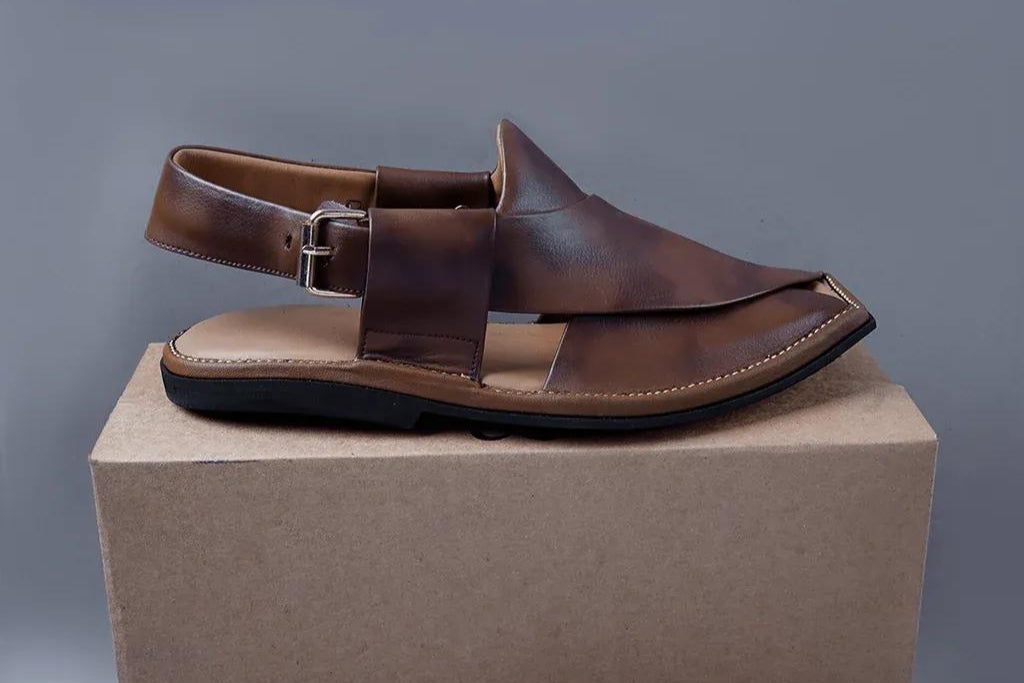 Glossy Cherry Brown Kaptaan Chappal with Signature Overlap Design and Square Toe